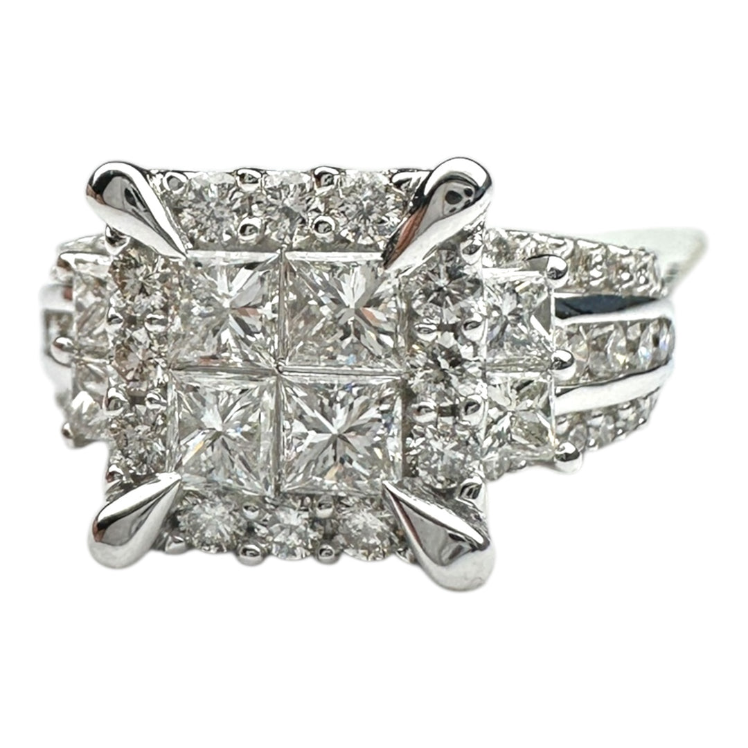 18 karat white gold, 3.50 carat diamond princess, invisible halo ring