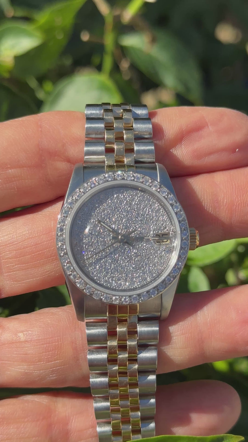 18 karat 2-Tone Rolex Datejust 31 mm Watch 4ctw Diamond Pave Dial and Bezel