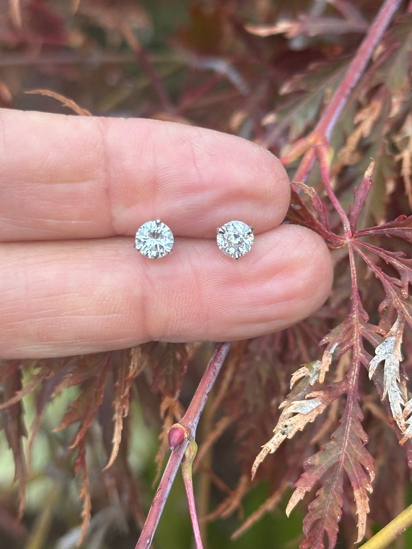 14 karat white, 1.22 carat natural diamond screw-back stud martini earrings