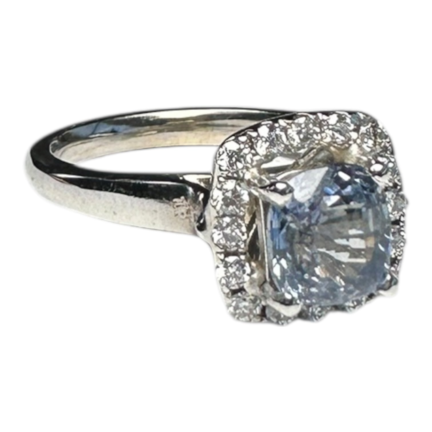 14 Karat 2.48ct Cushion Sapphire Natural-Unheated & Diamond Halo Ring