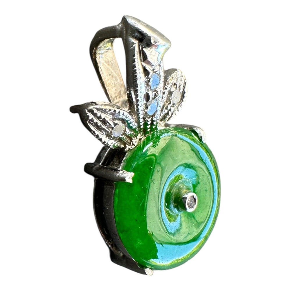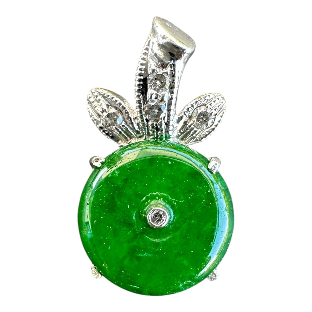 18kt Deep Green Jadeite Disc and Diamond Bow-tie Pendant Drop