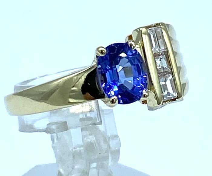 Tanzanite and Baguette Diamond Ring 14kt Yellow Gold