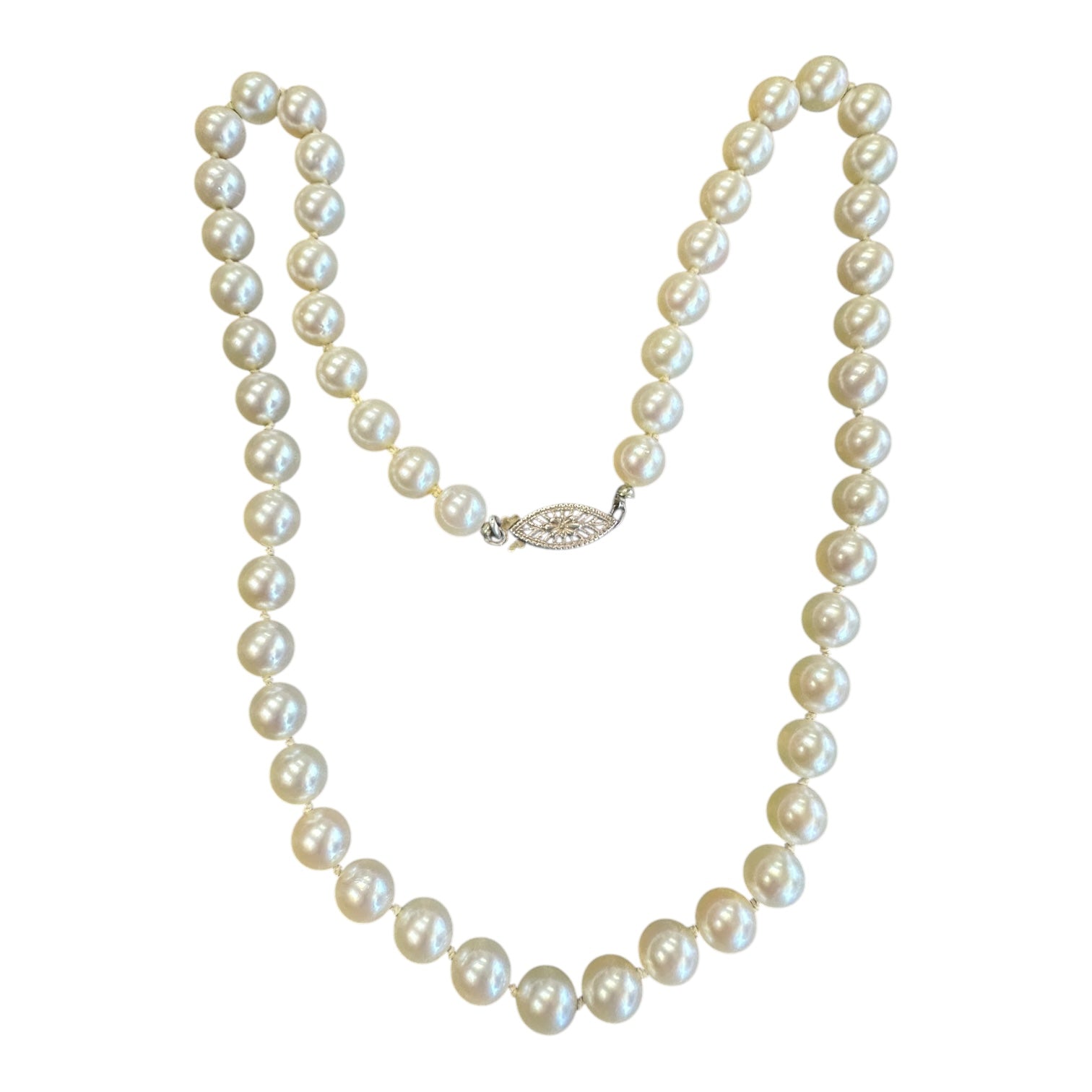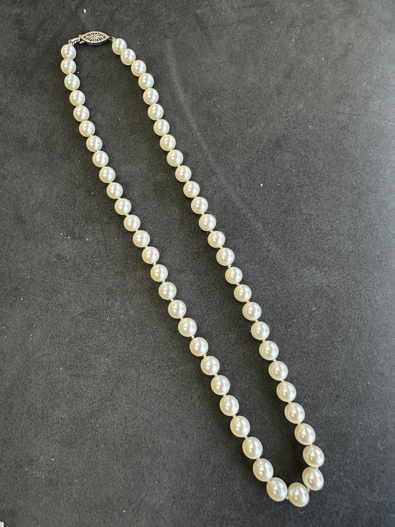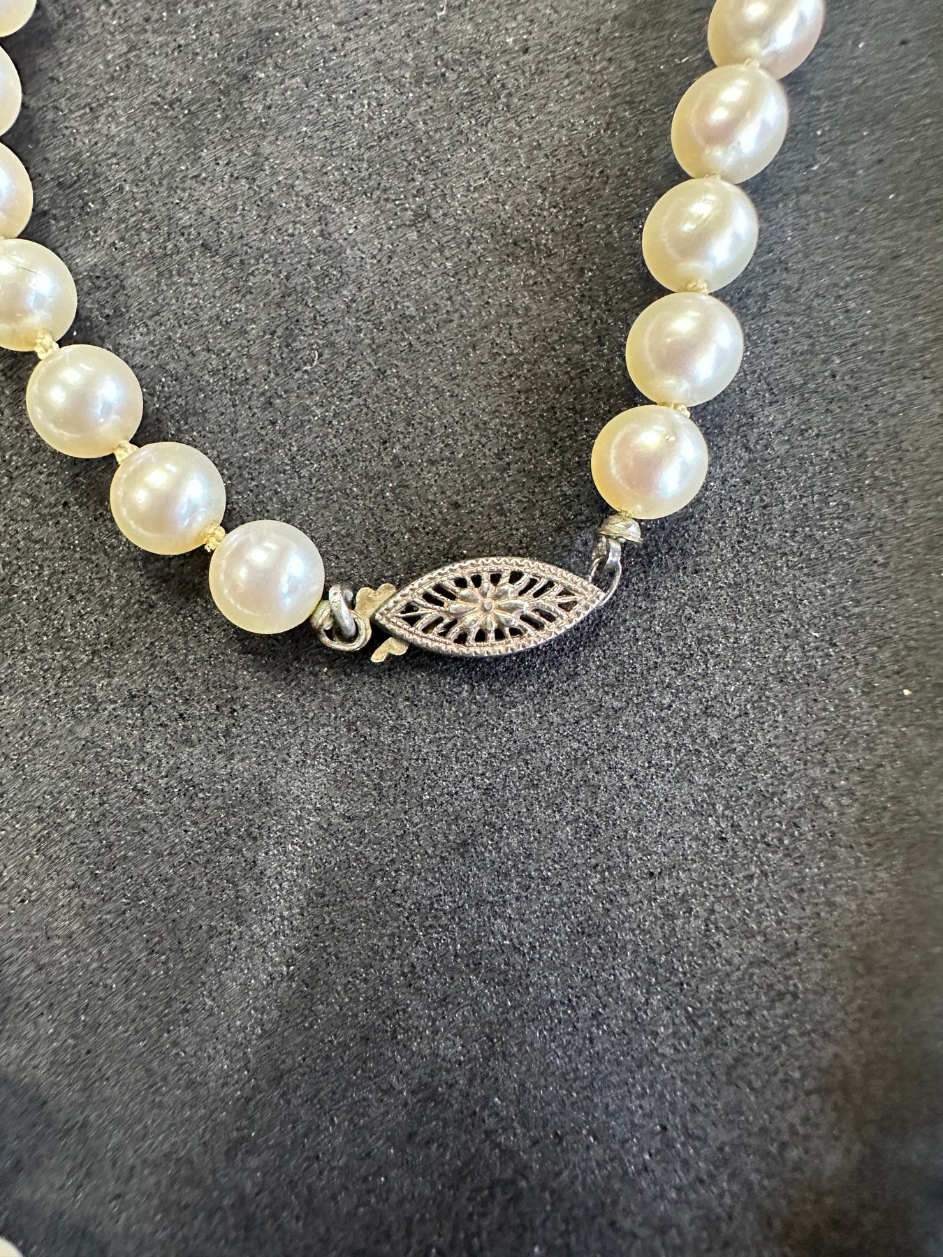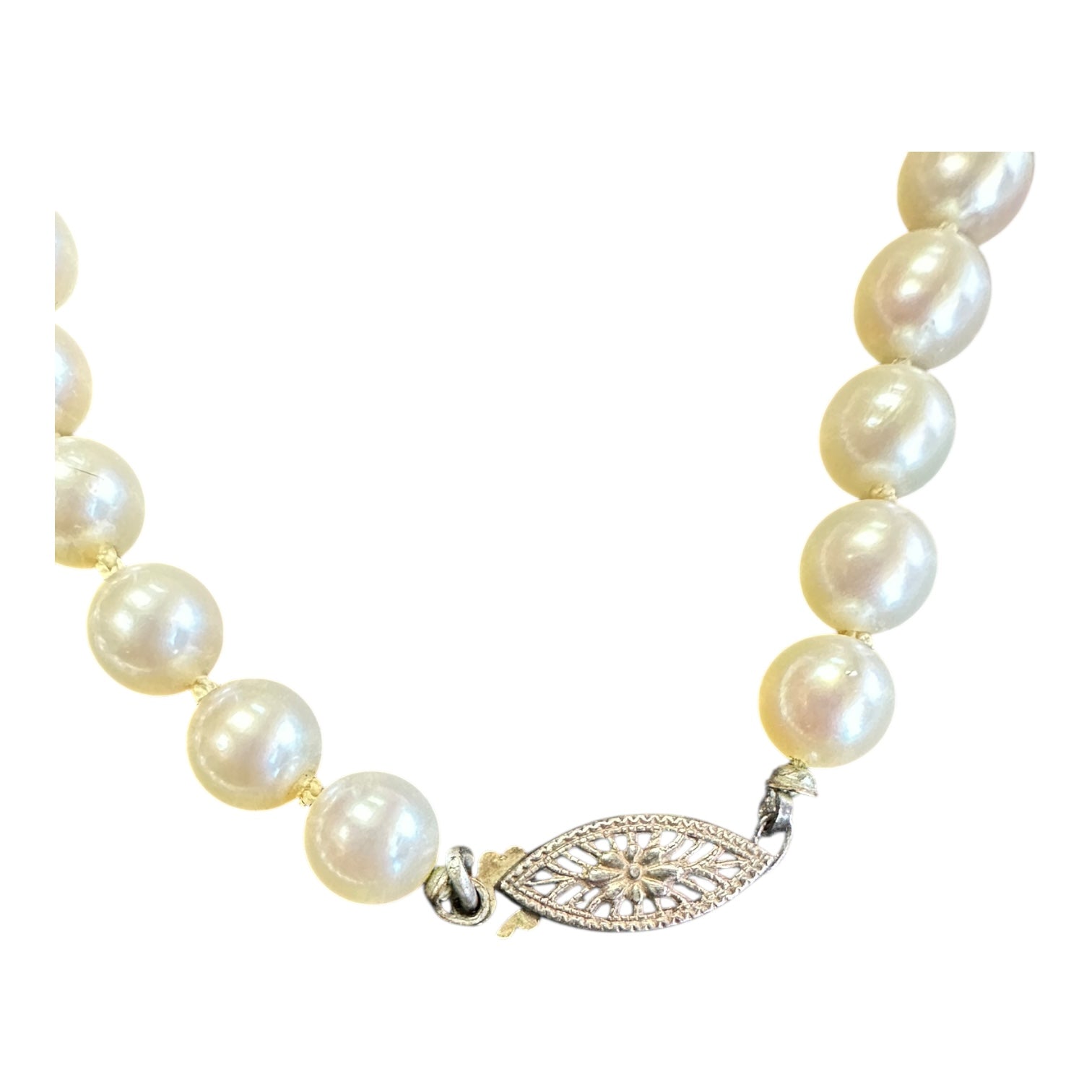 Vintage 16”  White 6.7 mm Akoya Cultured Pearl Strand AAA Quality