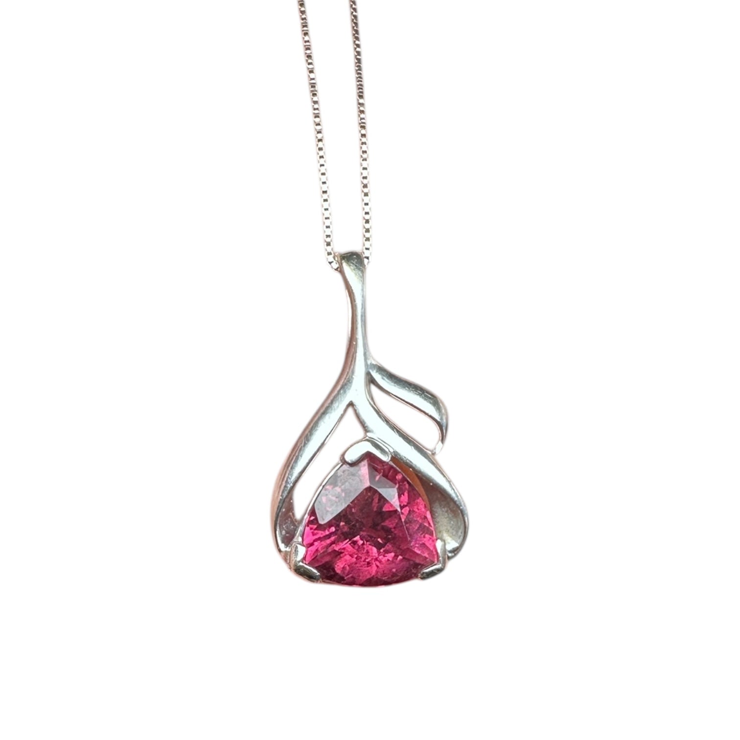 14kt Pink 4.25ct Tourmaline Trillion-Cut With Chain