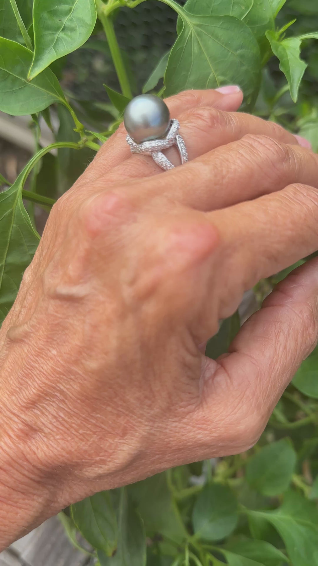 AAA Diamond and Gray 14.5mm Tahitian Pearl 1 ct Ring