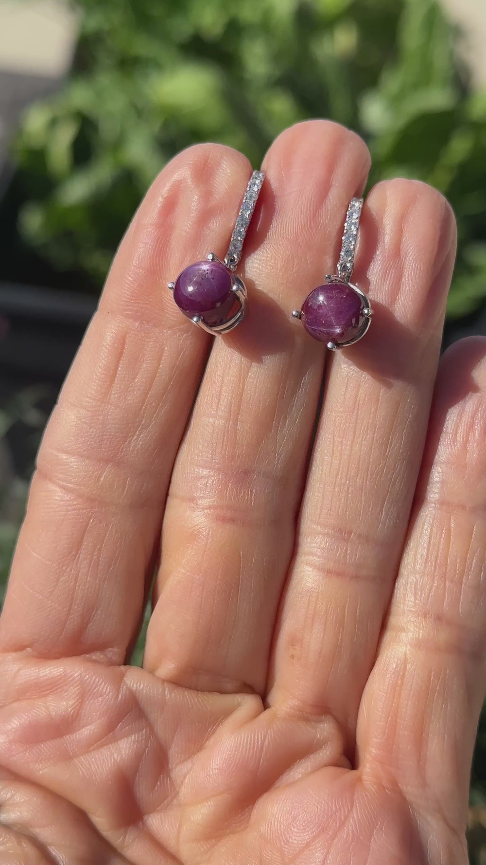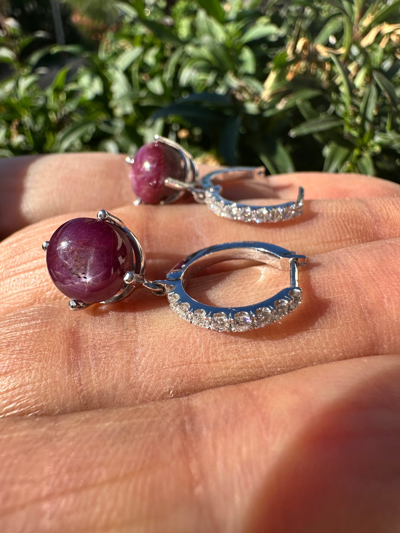 14kt 5cts Star Ruby, 1/3ct diamond hinge hoop earrings