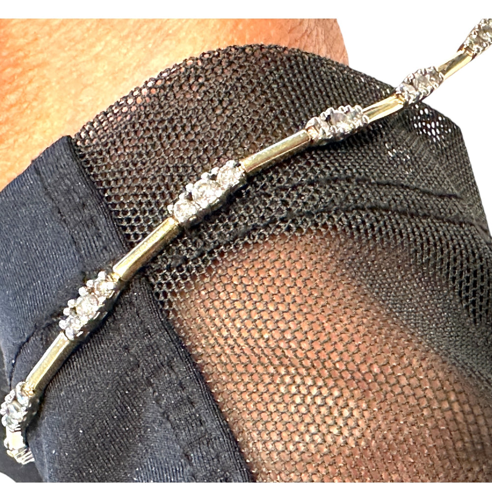Groups of three diamonds are set in white gold to highlight the quality of the diamond color, assuring you the most beautiful bracelet. The clasp is accompanied with a 'safety' flip that will securely fold-over the bracelet added, value to your purchase.