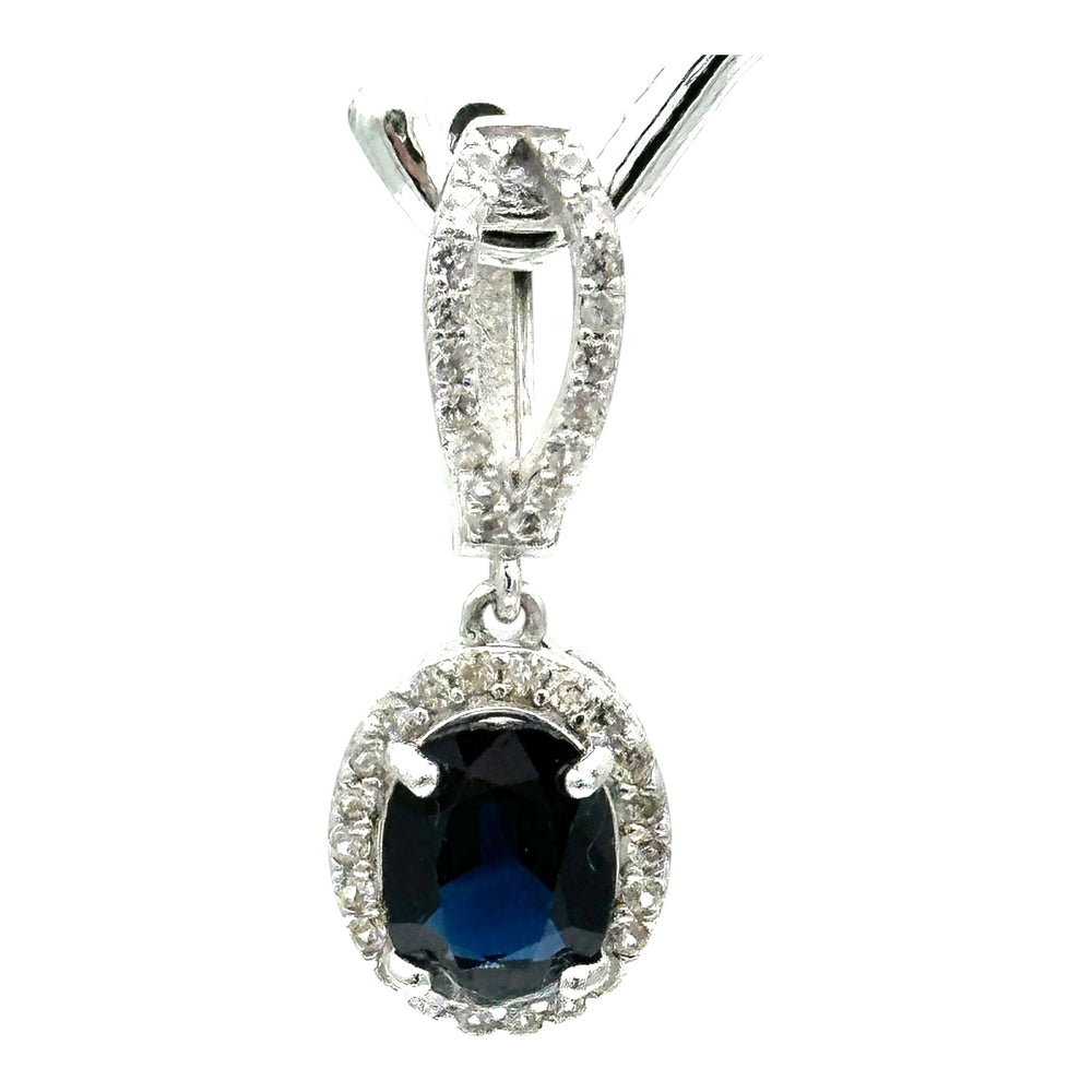 14 karat white gold, diamond halo 3.50 Ct blue stone earrings