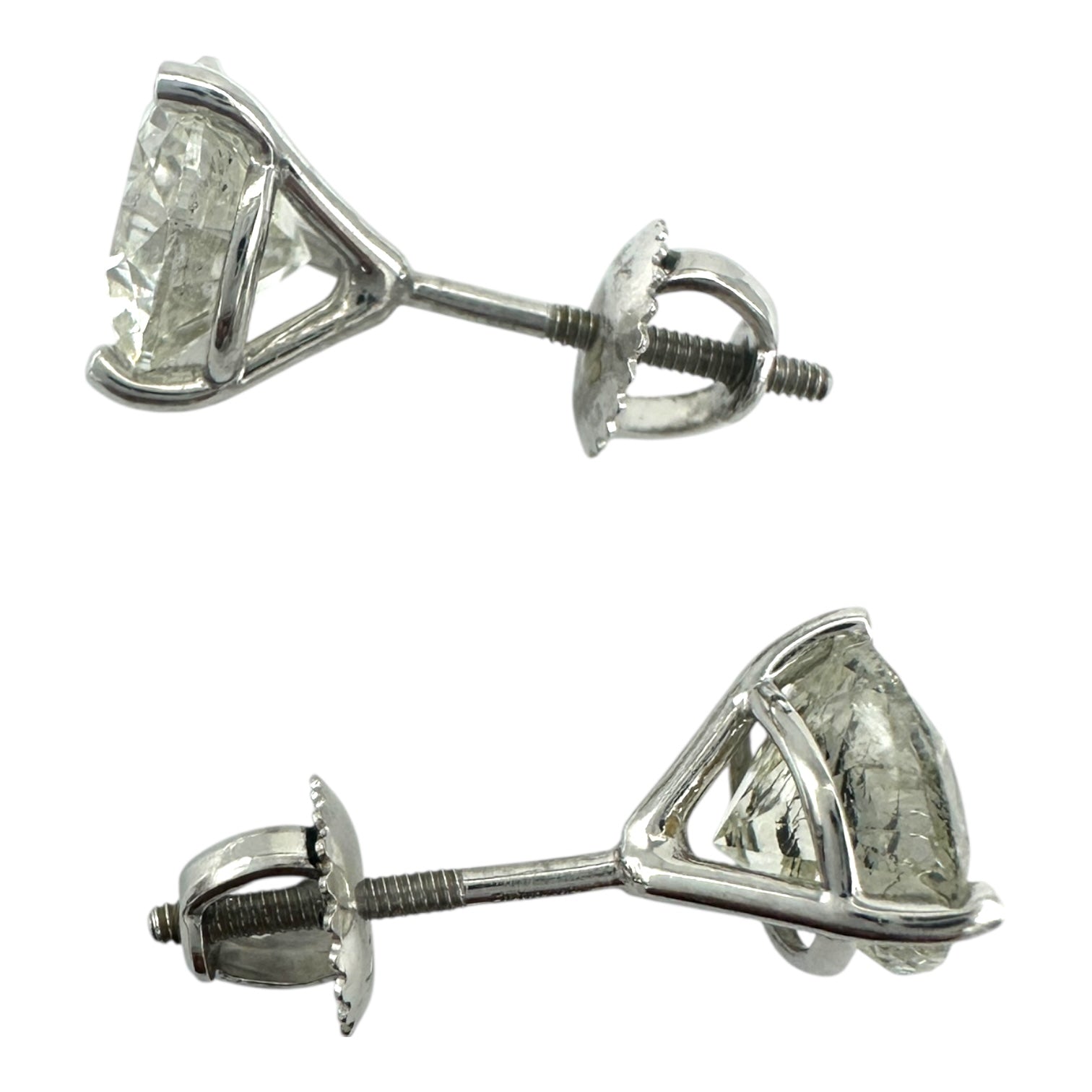 Expertly crafted with 3.01 ct diamonds set in natural martini settings, these studs exude both style and sophistication. The quality of the diamonds, graded at I1, paired with their J color, guarantees a brilliant and eye-catching sparkle. With screw backs, these earrings provide a secure and comfortable fit.