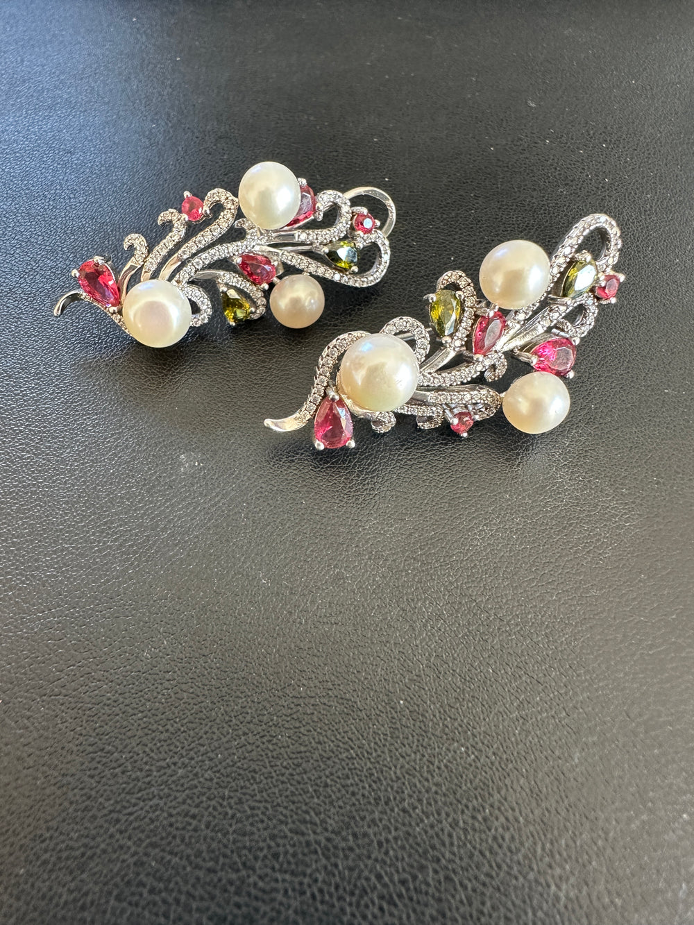 Expertly crafted from sterling silver, these earrings feature stunning pearl gemstones and secure omega clip post closures. The perfect combination of elegance and comfort, these earrings are a must-have addition to your jewelry collection. Elevate any outfit with these timeless and versatile earrings.