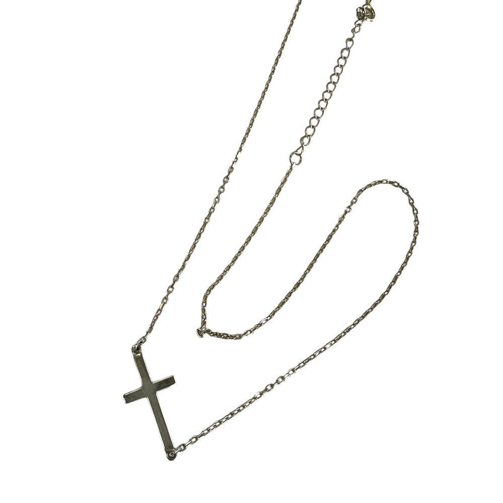 Sterling Polished Sideways cross 1” on Adjustable 16-18” Chain