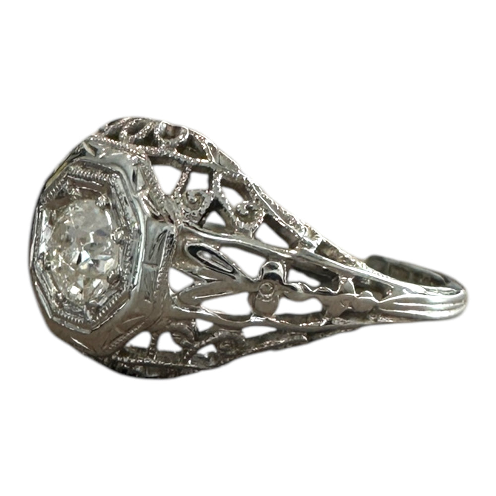 Art deco 18 karat white gold filigree .39 carat diamond ring
